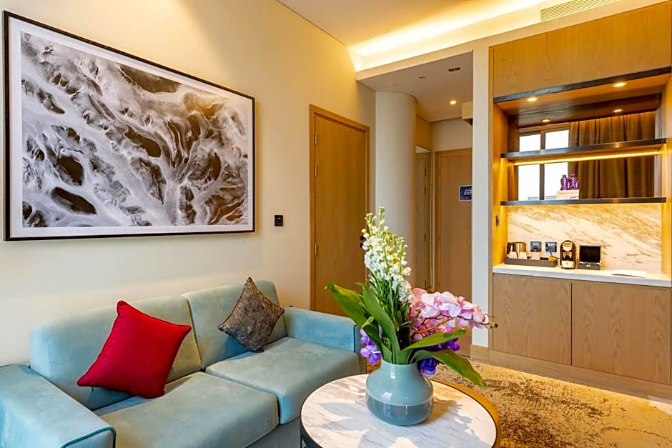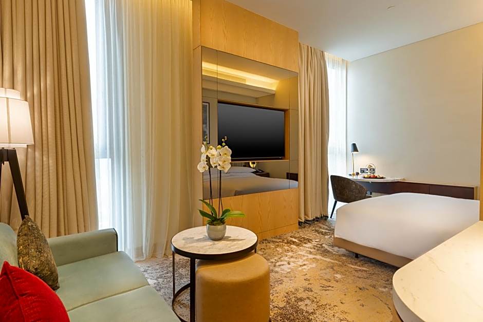 The air-conditioned suite features a flat-screen TV, a mini-bar, a tea and coffee maker, a seating area as well as city views. The unit has 1 bed.