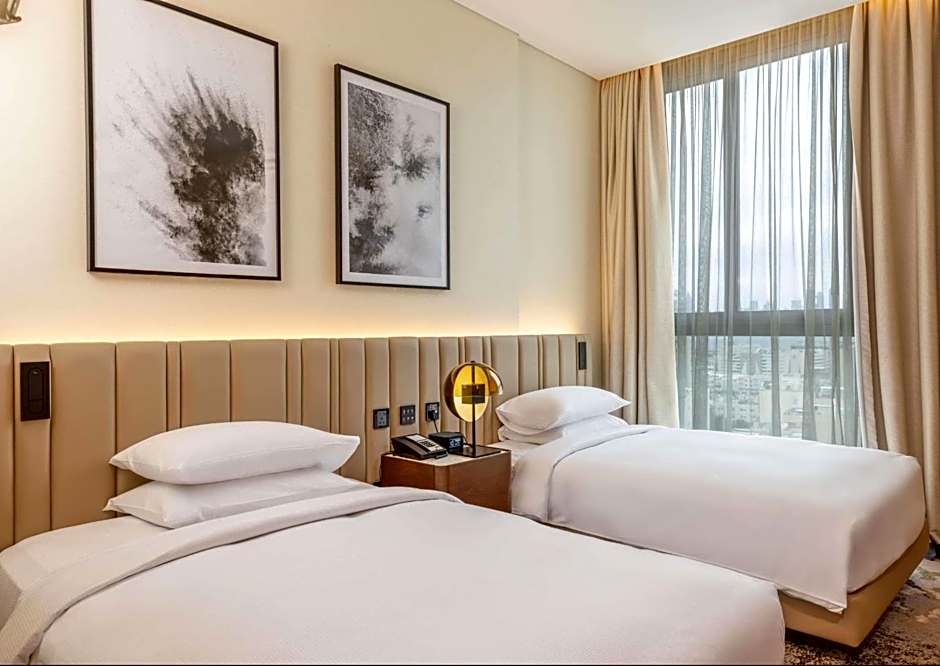 The air-conditioned suite features a flat-screen TV, a mini-bar, a tea and coffee maker, a seating area as well as city views. The unit has 2 beds.